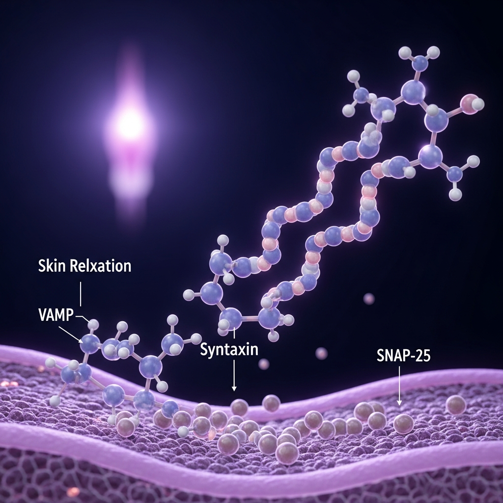 Compete com SNAP-25 pelo complexo SNARE, reduzindo liberação de acetilcolina em junções neuromusculares faciais. Reduz contrações causadoras de rugas de expressão.