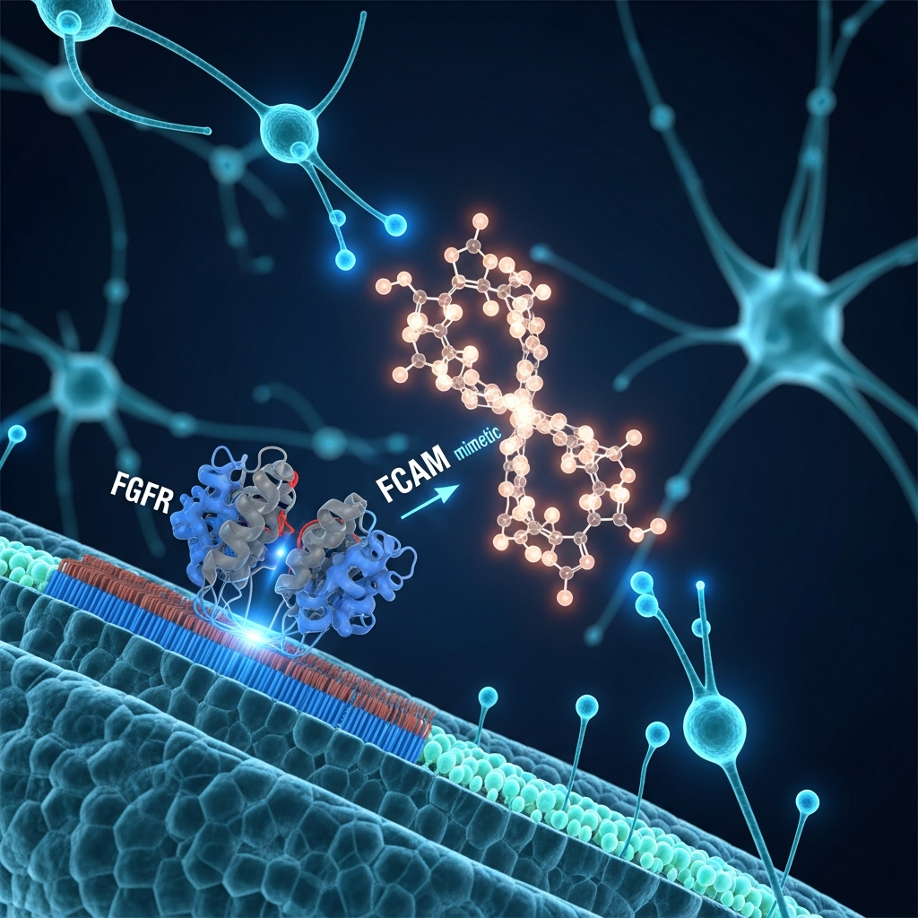 Mimetiza a região FGL do NCAM, ativando receptores FGFR e promovendo plasticidade sináptica via cascata de sinalização intracelular.