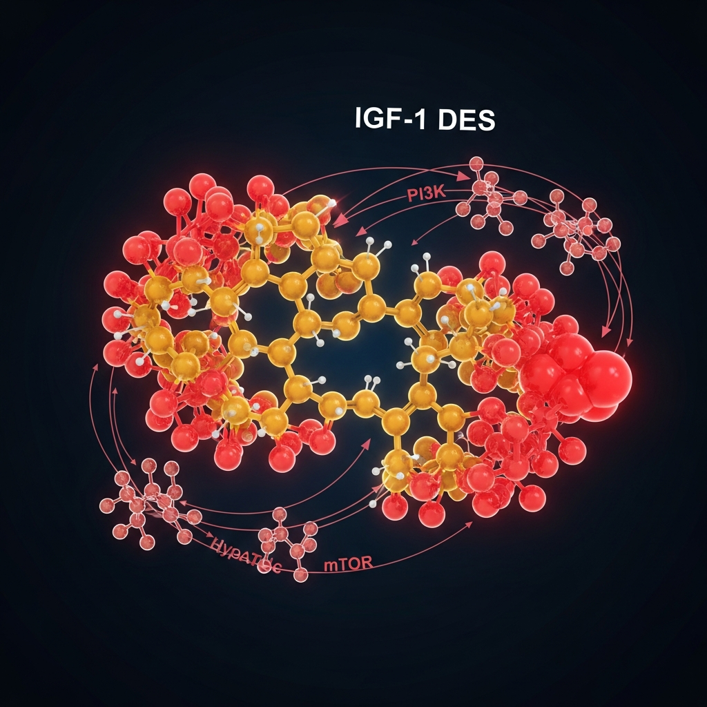 Versão des-aminada do IGF-1 que apresenta afinidade reduzida pelas proteínas de ligação (IGFBPs), resultando em maior biodisponibilidade local. Ativa receptores IGF-1R no tecido muscular onde é aplicado, estimulando síntese proteica, diferenciação de células satélites, proliferação mioblástica e redução de apoptose celular. Produz pump muscular intenso e crescimento localizado sem efeito sistêmico relevante.