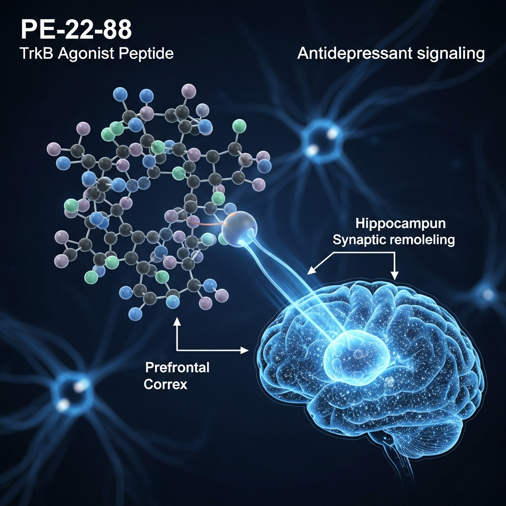 Peptídeo antidepressivo que potencializa sinalização do BDNF via receptor TrkB, com rápido início de ação.