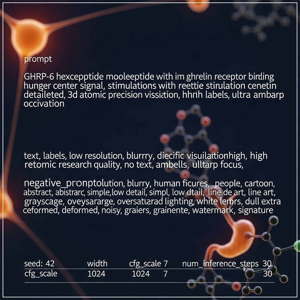 Hexapeptídeo da classe GHRP com alta afinidade pelos receptores hipotalâmicos de grelina, resultando em forte efeito estimulador de apetite (30-60 min após aplicação). Estimula pulso de GH e produção de IGF-1, favorecendo processos anabólicos e recuperação muscular.