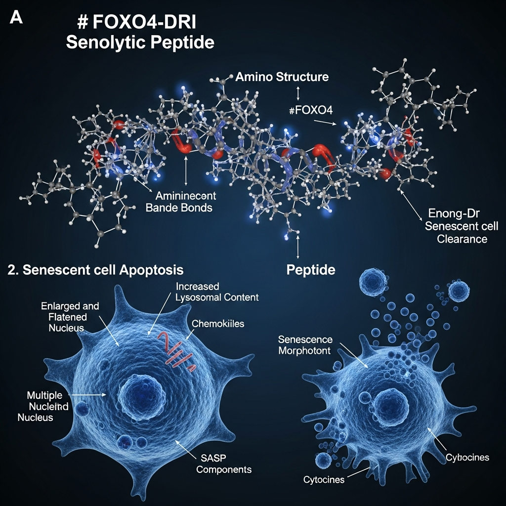 Peptídeo senolítico que induz apoptose seletiva em células senescentes, potencial anti-envelhecimento.